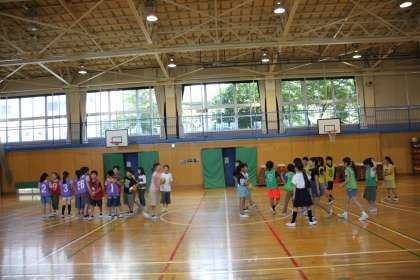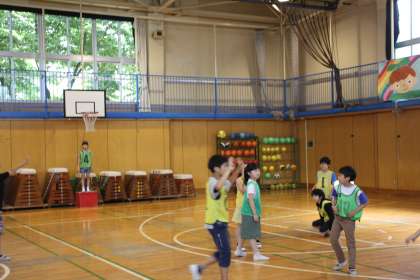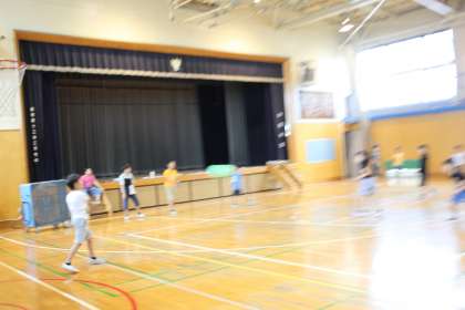 体育館をいっぱいにつかって、ポートボールやドッジボールで盛り上がる4年生。