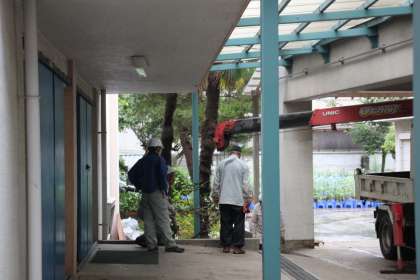土曜日、日曜日を使って、校庭にある樹木や石碑を新校舎に移転する作業を行いました。