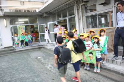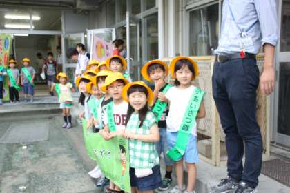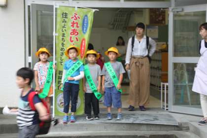元気いっぱいのあいさつを振りまいて、あいさついっぱいの若小にしてくれました。