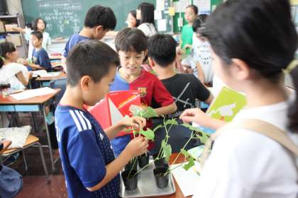 発芽の条件を育てた5年生たちは、この苗をどうすればより育つのかを考えました。