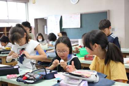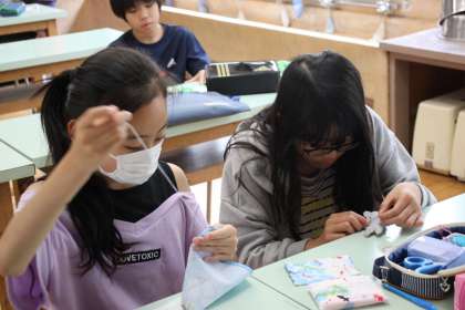 5年生が家庭科の時間に、ポケットティッシュカバーをつくりました。