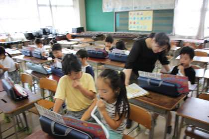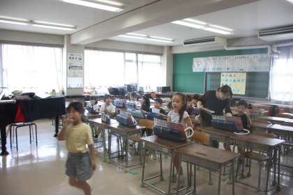 2年生が休み時間に音楽室に来て、鍵盤ハーモニカを練習中です!