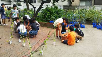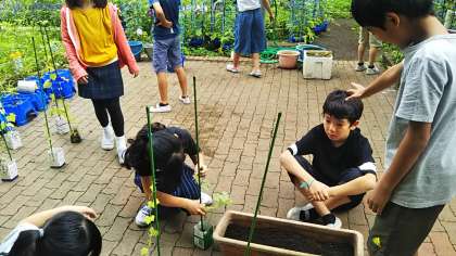 本来であれば校庭の畑に植え替えるべきですが、今年度はお引越しのためできません。