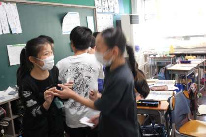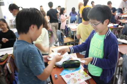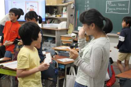 今日は今まで学習をしたことを生かして、英語やローマ字の名刺交換に、自己紹介をしました。