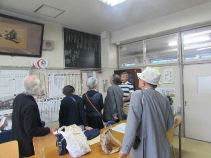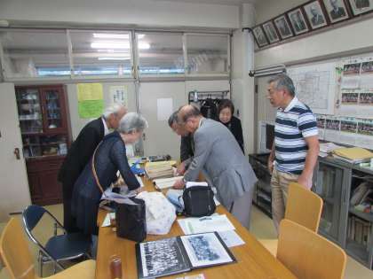 新校移転を前に、昭和22年度卒業の先輩方が本校にお見えになりました。懐かしい場所をご覧になりながら、話に花をさかせておられました。皆さんが通っていたころは、まだ木造の校舎でした。学校に永年保存されている卒業台帳に自分の名前を見つけると、たいへん感激してくださいました。新しい校舎もぜひ見に来てくださいね。
