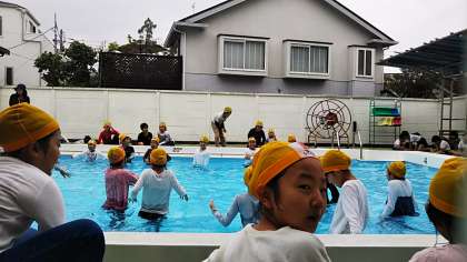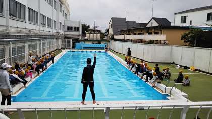 万が一の水の事故に備えて、みんなで静かに命を守る学習をしました。