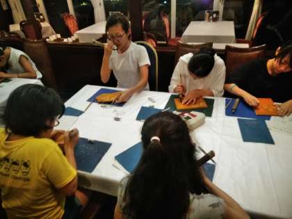 日光彫りを体験しました。右手の角度と力のいれ方が秘訣です。苦戦をしましたが、力作が完成しました。