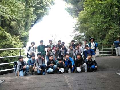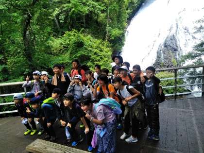 湯滝でクラス写真をとり、さらに進んでいきます。華厳の滝はまた違う良さがあります。