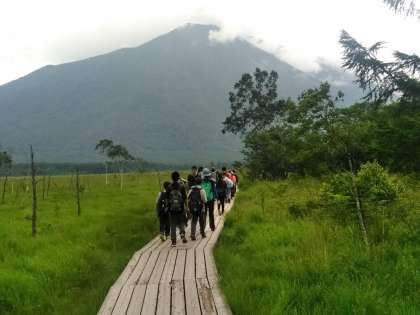 戦場ヶ原に出ると、男体山が私達を優しく迎えてくれました。