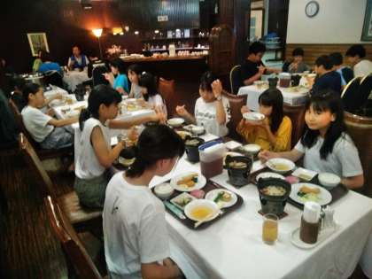 二日目の夕食。たくさん歩いたから、たくさん食べてくださいね。もちろん、この後に備えるためにも...