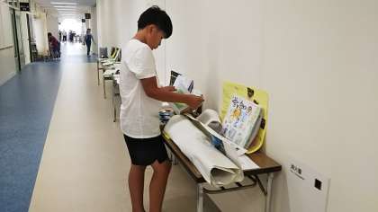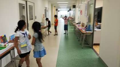 上級生の作品、下級生の作品と、みんな興味津々の様子で見て回っています。