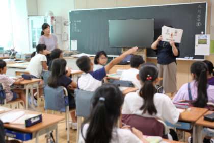 新学期早々ではありますが、5年生は講師の先生をお招きして、外国語活動の学習をしました。