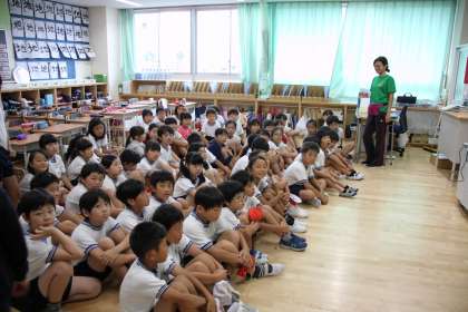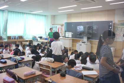 4年生が全員、4年2組の教室に集結しています。