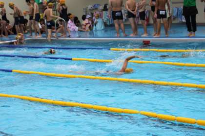 練習とはいえ、熱い泳ぎを見せてくれた高学年。