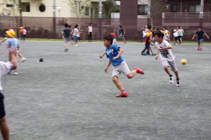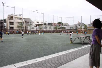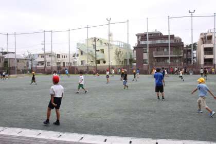 中休みの校庭では、とても多くの子達が遊んでいます。
