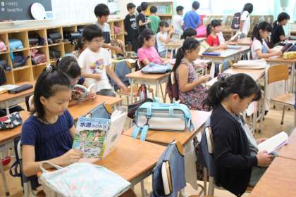 若小のよい習慣は新校舎でも確実に引き継がれています。