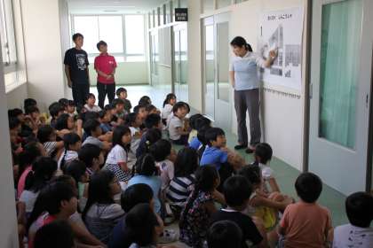 2年生が生活科で、新校舎の中を下級生に紹介することになりました。