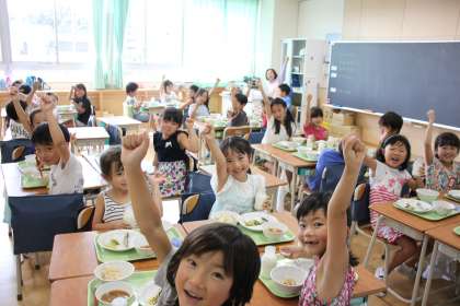 かわいい1年生たちも、思わず「お〜いし〜!」