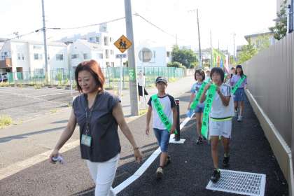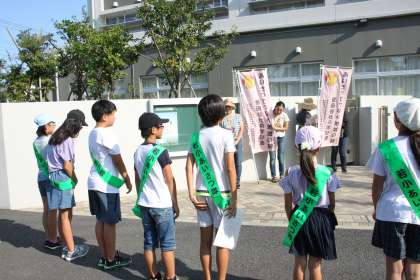 夏のような日差しの朝に、元気いっぱいのあいさつを振りまいてきました。