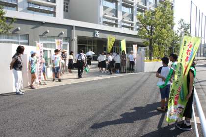 今朝は代表委員会の子達が世田谷中学校に出張!