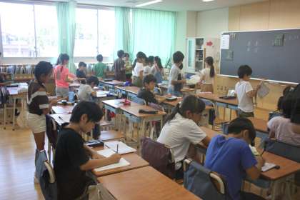 登校直後ではありますが、朝の会より前にしっかりと学習できるのが若小の子のよいところです。