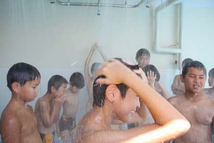 最後にお湯のシャワーを浴びて、さっぱりした高学年でした。