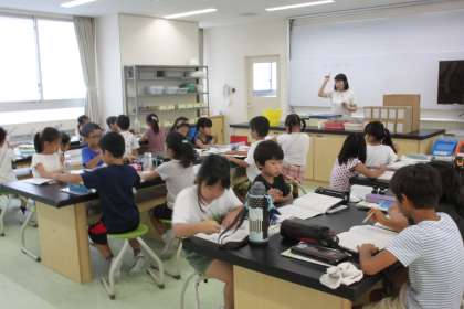 2年生が理科室で算数の学習をしました。