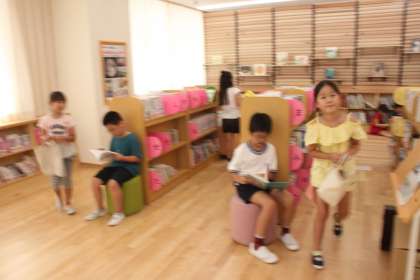 明るく真新しい図書室で、思い思いの本を読んでいます。