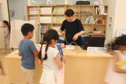 中休みの図書室には、たくさんの子どもたちが来ています。