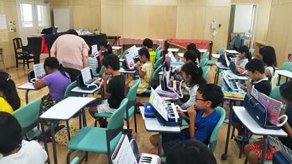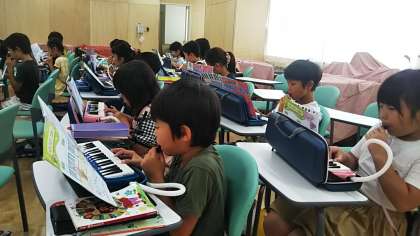 2年生が音楽の時間に、鍵盤ハーモニカを練習しました。