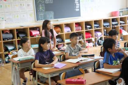 手を挙げて、きちんと立ち、正しい言葉遣いで発表できる2年生。