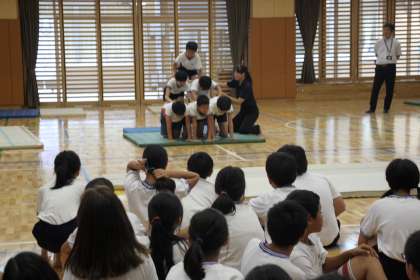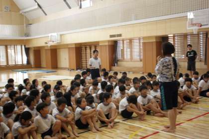 元気いっぱいの演技をするために、しっかりと説明を聞きます。