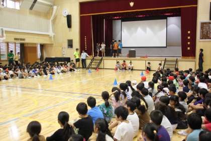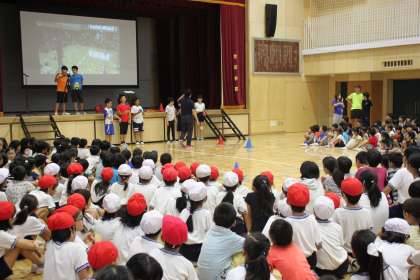 運動委員さんの動きが見えやすいように、ビデオカメラで同時撮影!