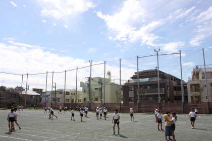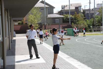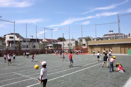 秋晴れの空の下、若小の子たちが元気いっぱいに遊んでいます。
