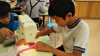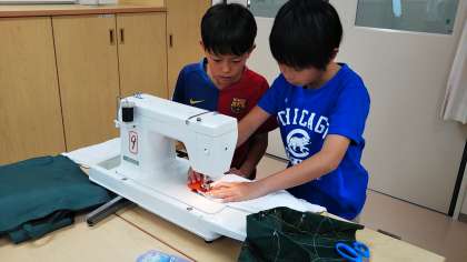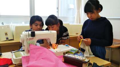 5年生が家庭科の時間に、ミシンを使った学習をしています。