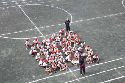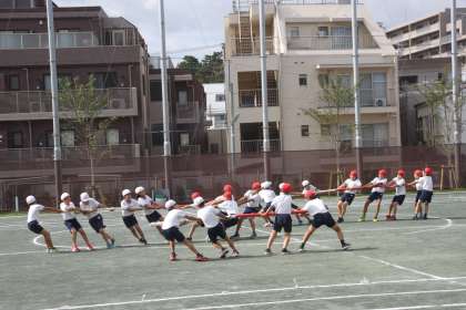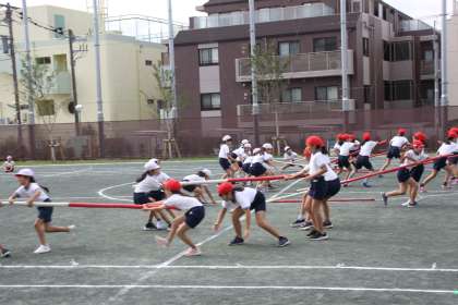 4年生たちが運動会で行う、棒ひきの練習をしました。