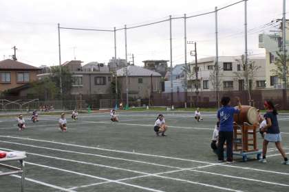 運動会の応援団の子達が、連日朝練習に取り組んでいます。