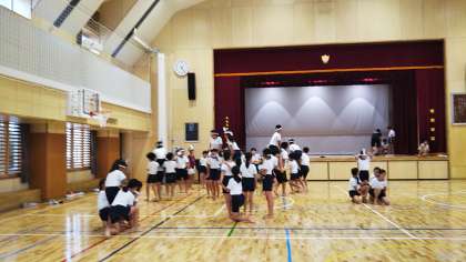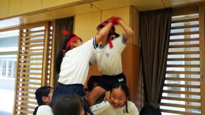 高学年の子たちは、お昼休みの時間を使って騎馬戦の稽古に励んでいます。