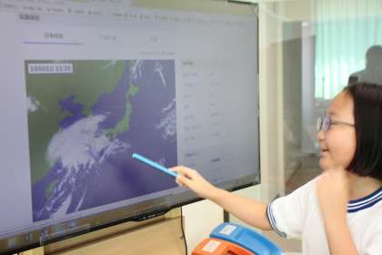 台風18号の進路を予想し、運動会の日のお天気について考えました。