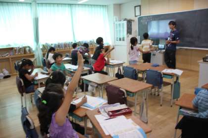 少人数指導を行っている算数の時間は、4つのクラスに分かれます。