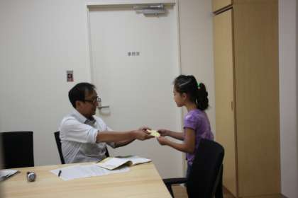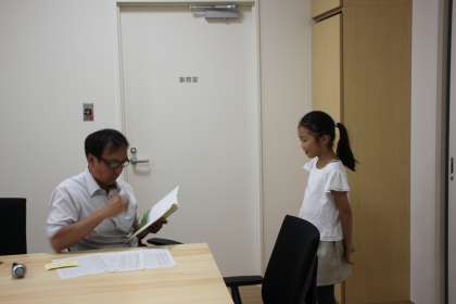 今日の中休みにも、3年生たちが日本語暗唱校長検定を受験するために、たくさん校長室にやってきました。