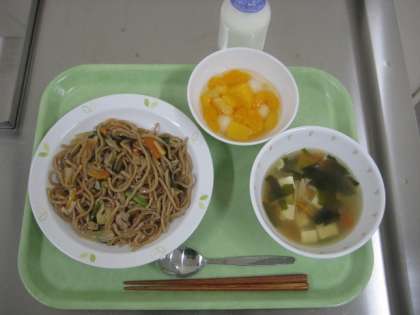 塩焼きそば わかめスープ フルーツ白玉 牛乳