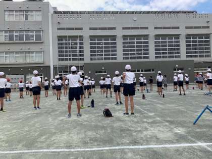 今日の午後、6年生は連合運動会に向けて杜の学び舎合同練習会に参加してきました。