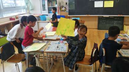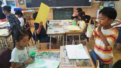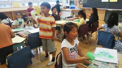 新しい感覚の制作に、ちょっと興奮気味の2年生たち。