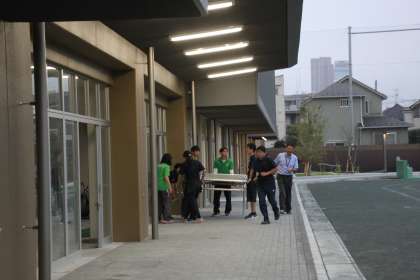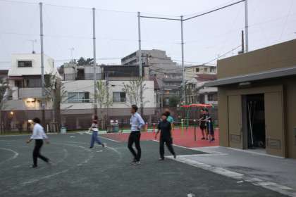 校庭では一輪車、竹馬はおろか、軽量アルミ合金でできている朝礼台までお片付け。