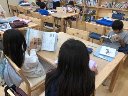 週に一度の図書の時間、新しい図書室になり雰囲気も変わりました。子どもたちは、たくさん本を手に取り、いろいろな本に触れながら集中して読書をしています。