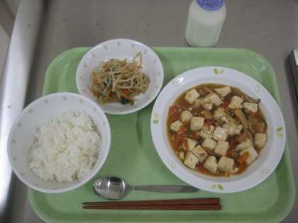ごはん 四川豆腐 ナムル 牛乳