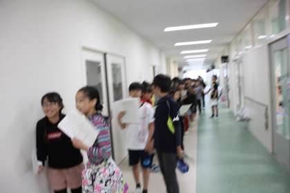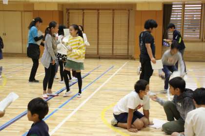 若小を代表して就学時の皆さんを案内する5年生たち。