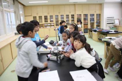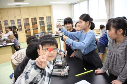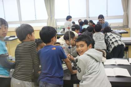 丸底フラスコにバーナー、スタンドを駆使してしっかりと記録をとった4年生。