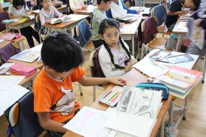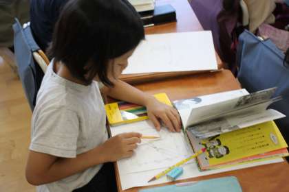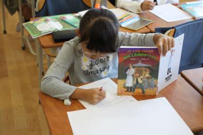 2年生が読書旬間に向けての取り組み「読書カード作り」に取り組んでいます。